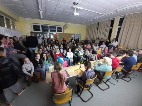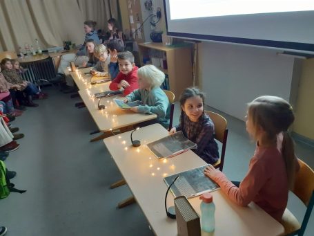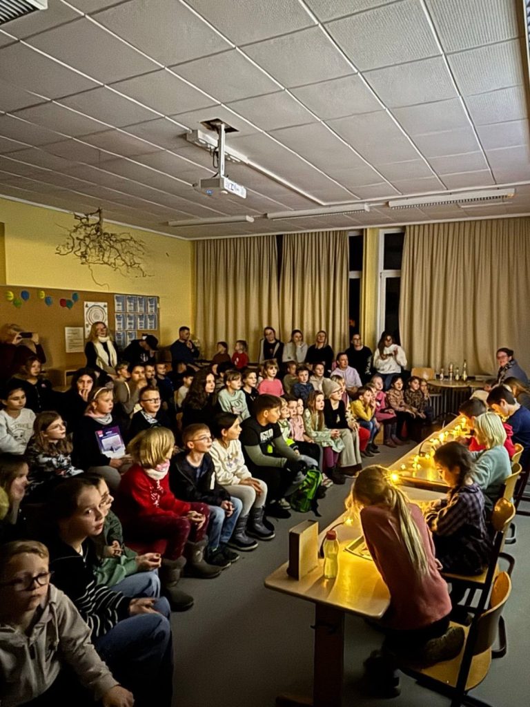 Auch in diesem Jahr fand am 14.11.2025 wieder der Leseabend in Neuhaus statt. Gestartet wurde mit einem Bilderbuchkino (Das kleine Gespenst von Ottfried Preußler). Im Anschluss gab es eine kleine kulinarische Stärkung, die von den Eltern vorbereitet wurde. Nachdem alle gut gesättigt waren, laßen einzelne Kinder in verschiedenen Klassenräumen aus ihren Büchern vor.